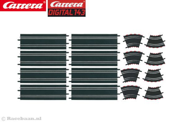 Maak je racebaan compleet met deze uitbreiding set 16 stuks. De set is te gebruiken in combinatie met een Carrera Go en Carrera Digital 143 racebaan en bestaat uit 8 rechte baandelen, 4 bochten 45 graden en 4 kuitbochten van 45 graden. Geschikt voor kinderen vanaf 6 jaar.